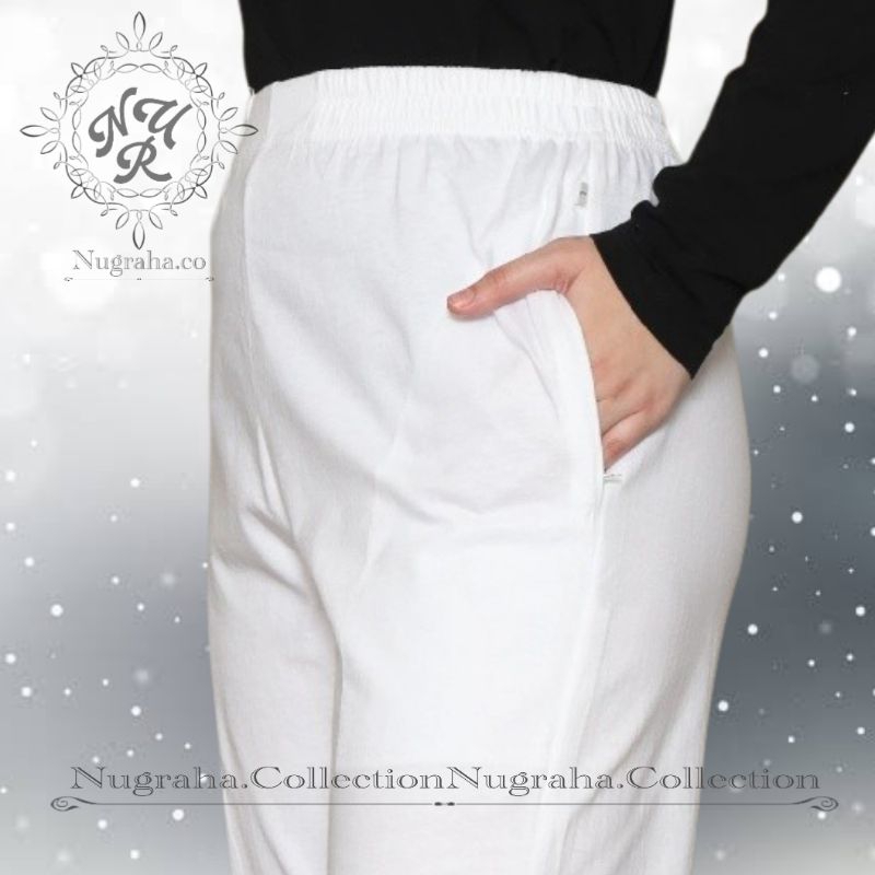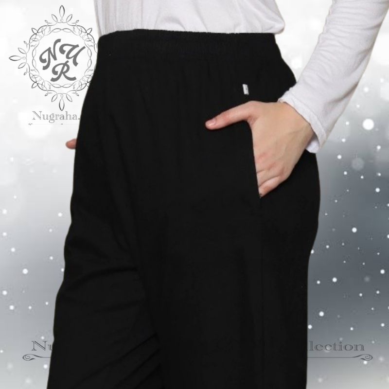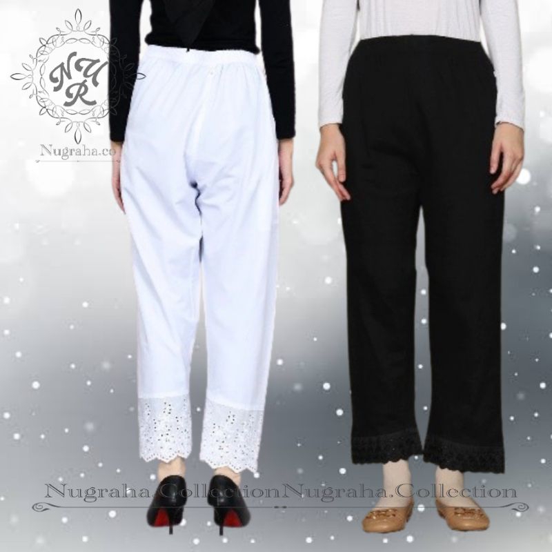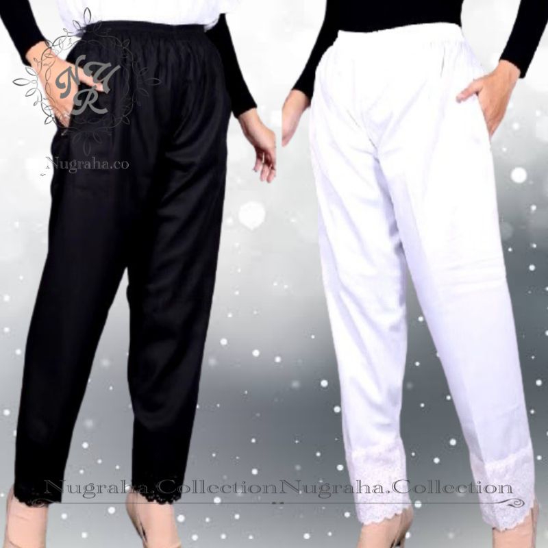 Celana Panjang Hitam Putih Wanita Pakai Renda dan Saku Cocok Di pakai Sehari hari - Perlengkapan Haji dan Umroh Wan