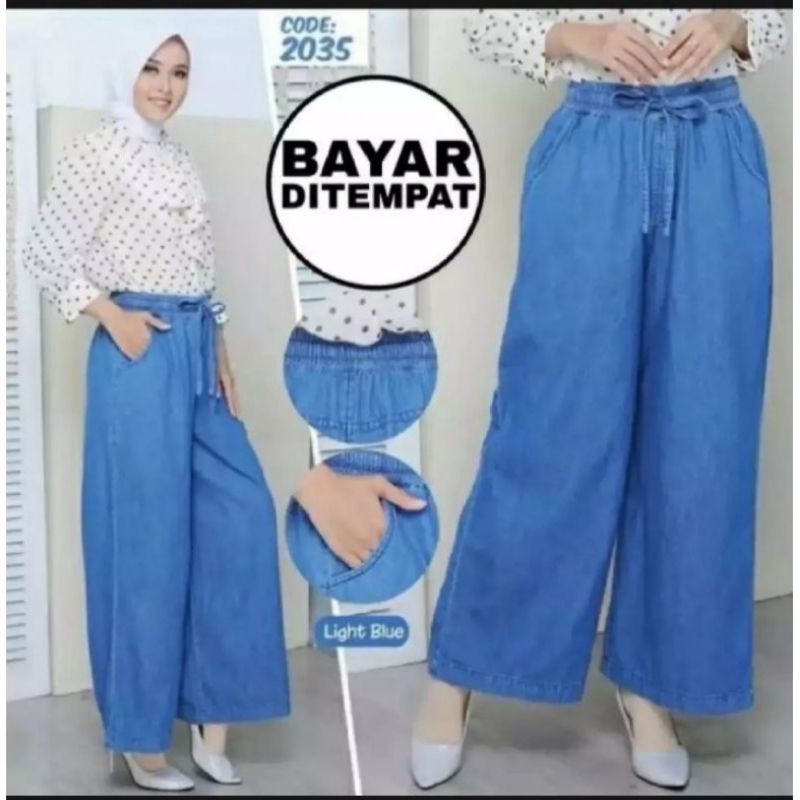 Celana wanita kulot rawis pinggang full karet free size bawahan wanita