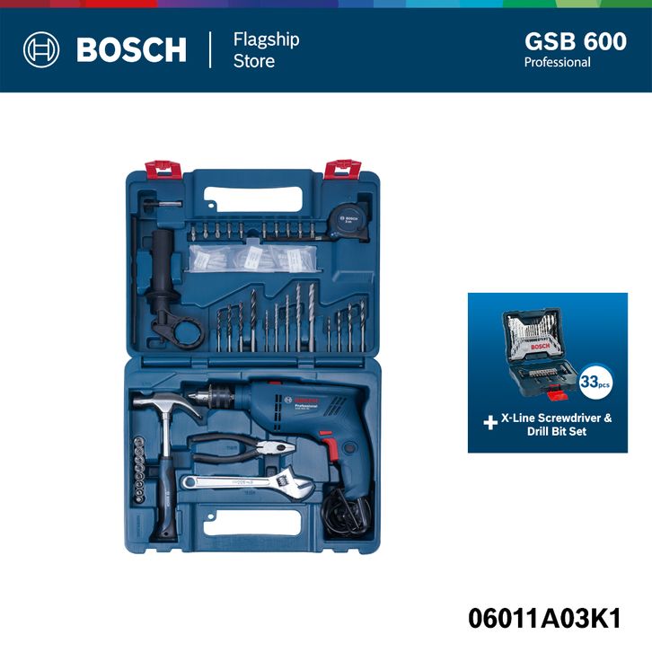 PROMO BUNDLING BOSCH Mesin Bor GSB 600 + Mata Bor Set X-Line 33 Pcs / Impact Drill with Accessories - 06011A03K1_260701