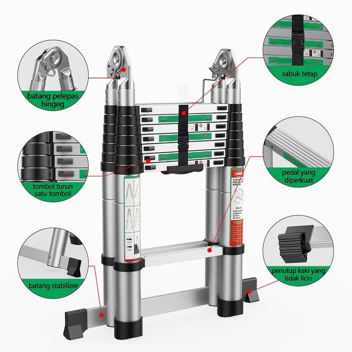 PROMO 【3.8m】ISKU Telescopic Ladder Alumunium 3.8m Single Telescopic Ladder/3.8 Meter Tangga ORIGINAL