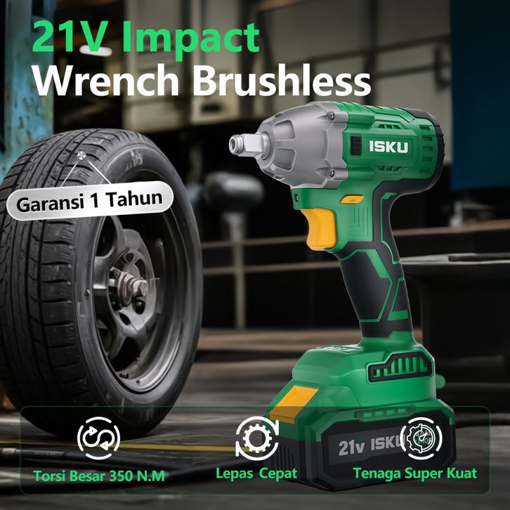 PROMO ISKU Impact Wrench 21V 350NM Motor Tanpa Sikat Brushless Variable Speed - Lampu Kerja LED Mobil Bangunan ORIGINAL