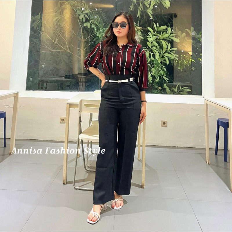 Diora Highwaist Pants / Celana Kulot Loose Pants Wanita / Kulot Straight Cut Pants Wanita Korean Style Terbaru