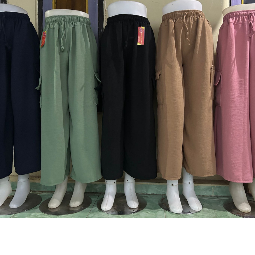 CELANA KULOT CRINGKLE CARGO WANITA CRINGKLE FULL KARET ALL SIZE JUMBO