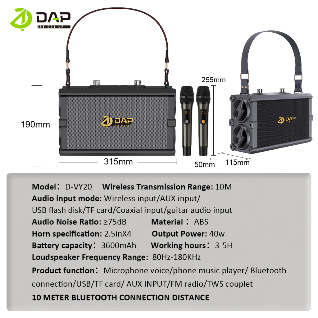 [Mall] DAP DUAL MIC SPEAKER KARAOKE BLUETOOTH 2.5 INCH BATTERY CAPACITY 3600MAH - GARANSI 1 TAHUN