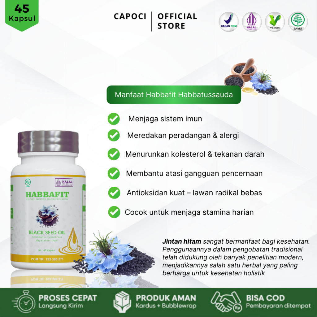 HABBAFIT Kapsul Herbal Penurun Kolestrol Tinggi dan Darah Tinggi Suplemen Daya Tahan Tubuh Imun Tubuh