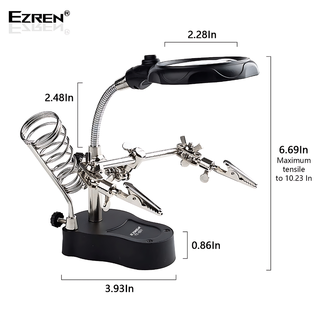Ezren TE-801 Kaca Pembesar Penjepit PCB + Lampu Holder 3.5x 12x AAA