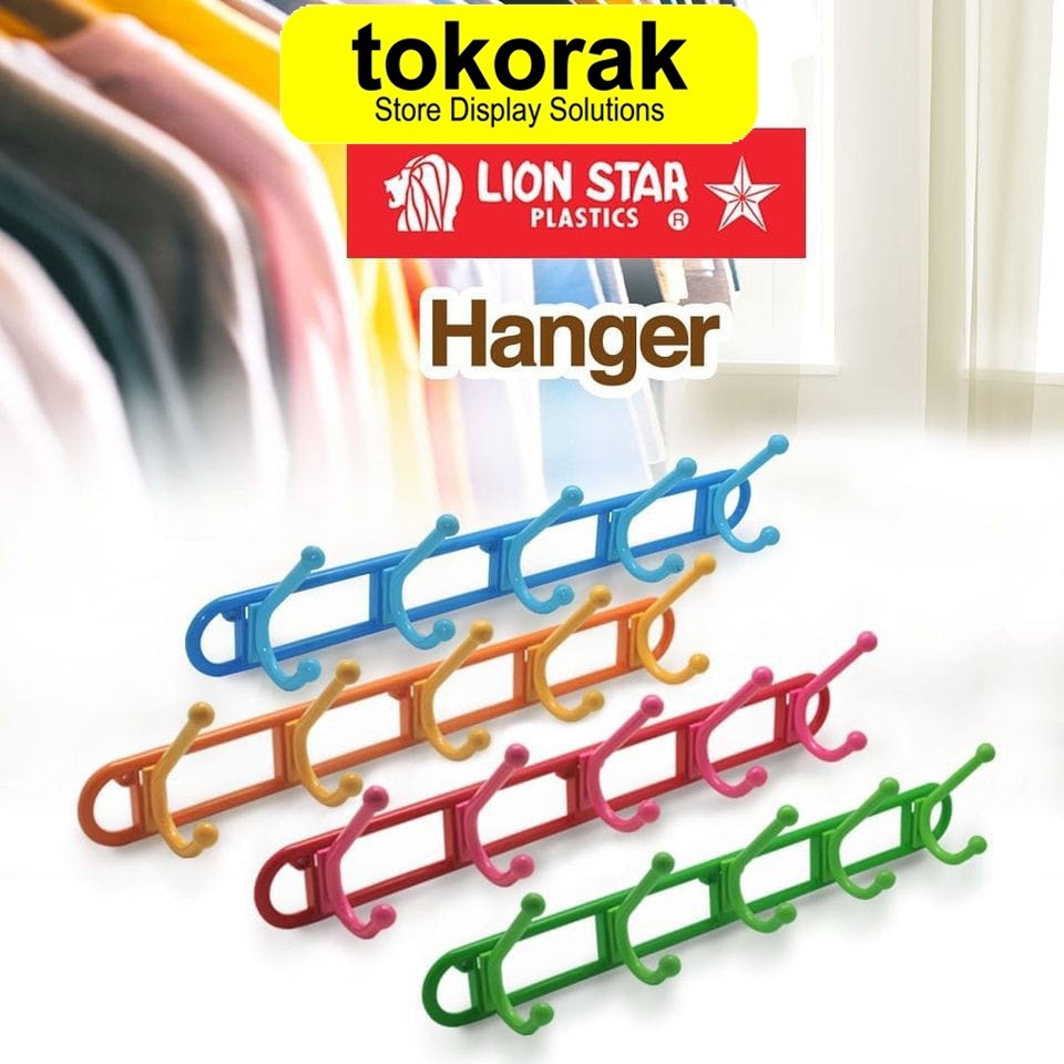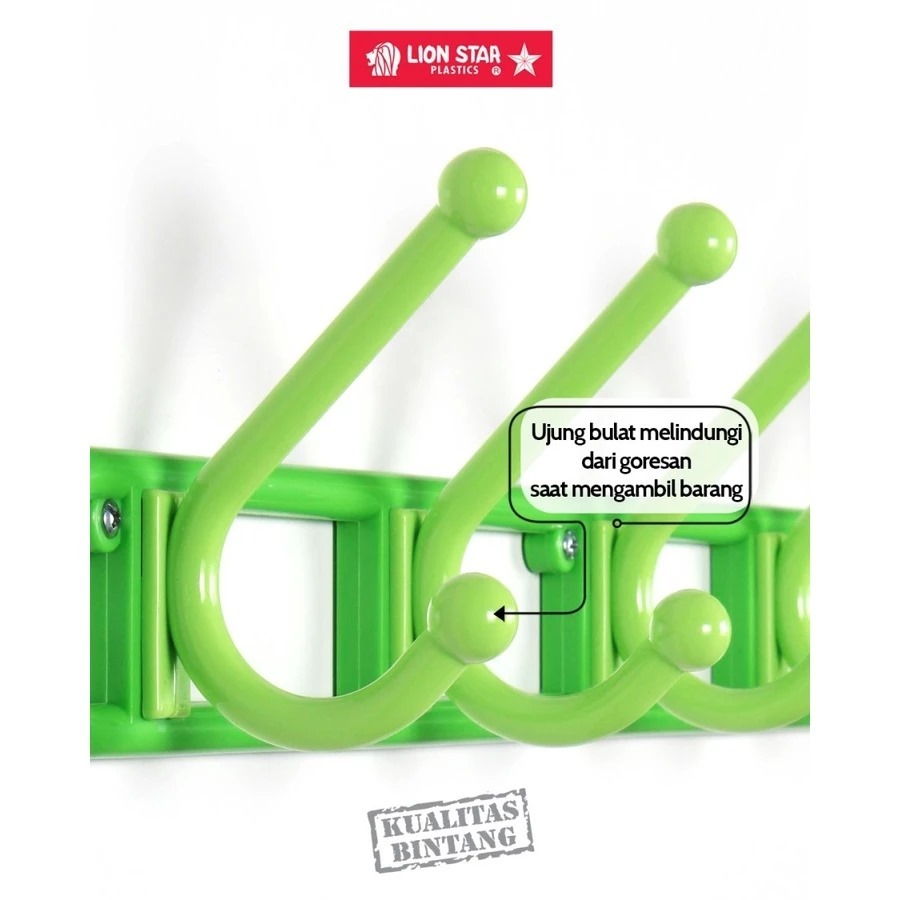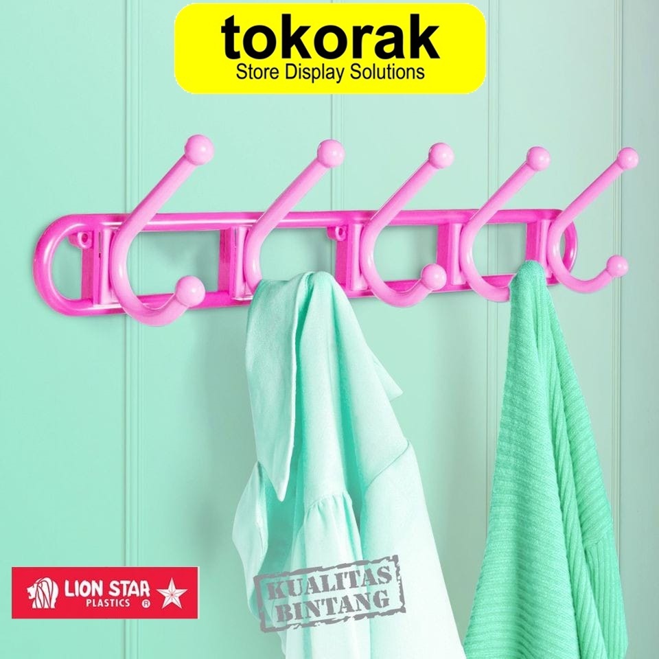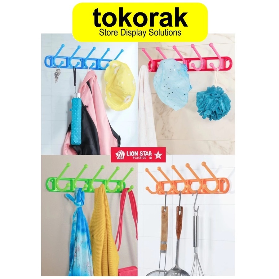 KAPSTOK PLASTIK 5 KAIT HANGER LION STAR GB-1 HOOK GANTUNGAN BAJU DINDING TEMBOK