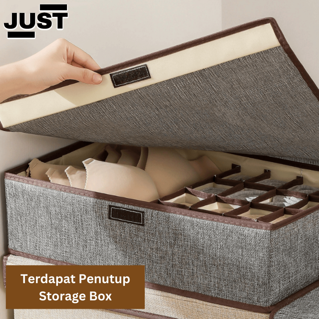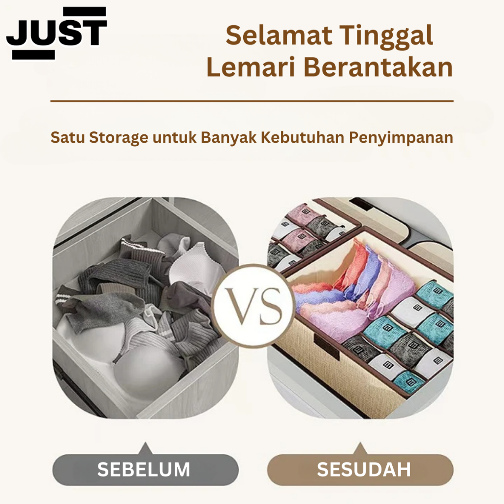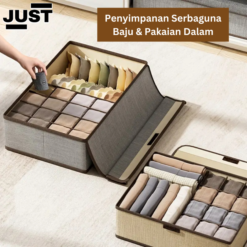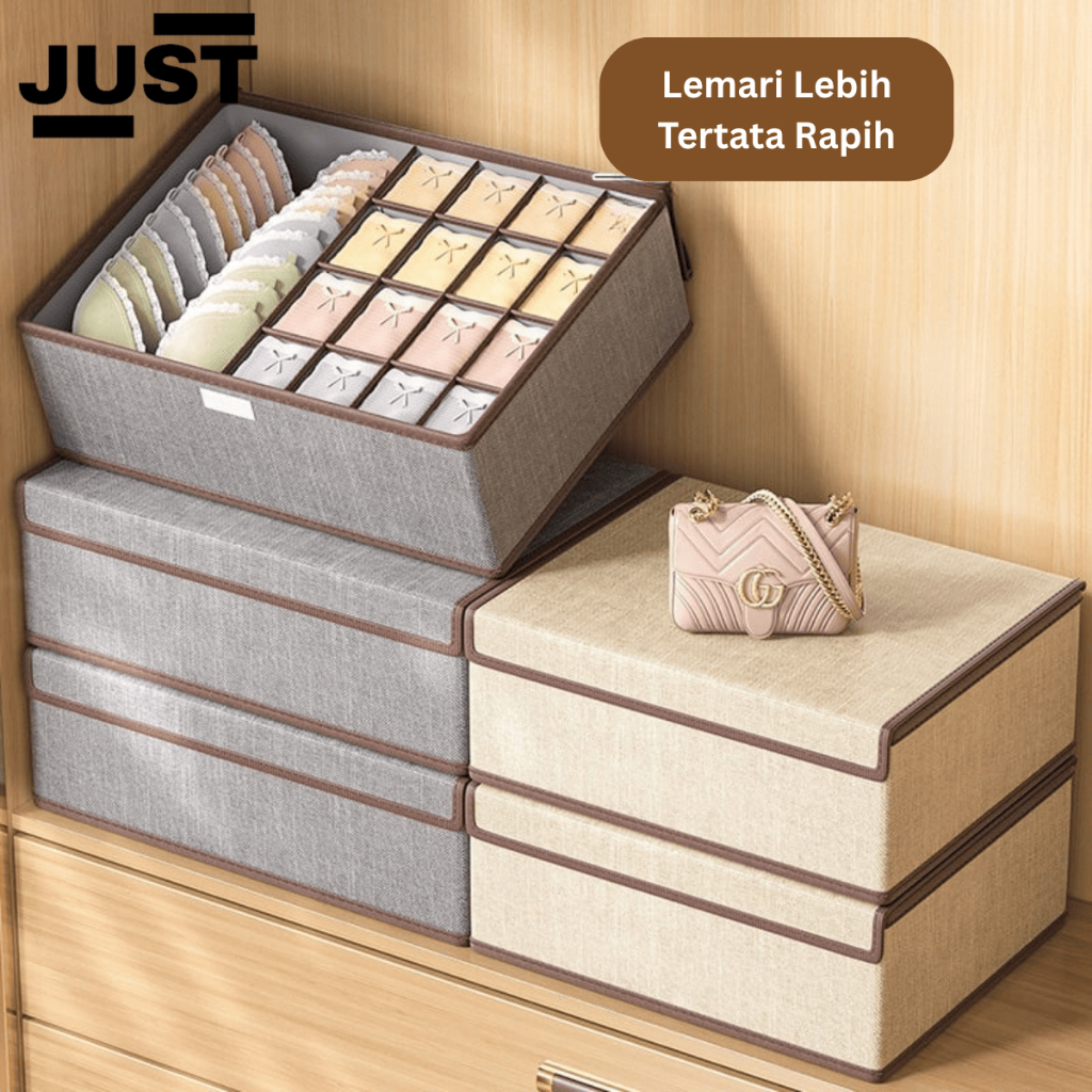 JUST Storage Box Organizer Kotak Sekat Tempat Penyimpanan Celana Dalam Bra dan Kaos Kaki Laci Lemari Pakaian Serbaguna T