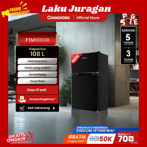 [Star] New Changhong Kulkas 2 pintu Mini (Refrigerator) Lemari Es Kapasitas 108 Liter Black FTM108DB Kulkas 1 pintu