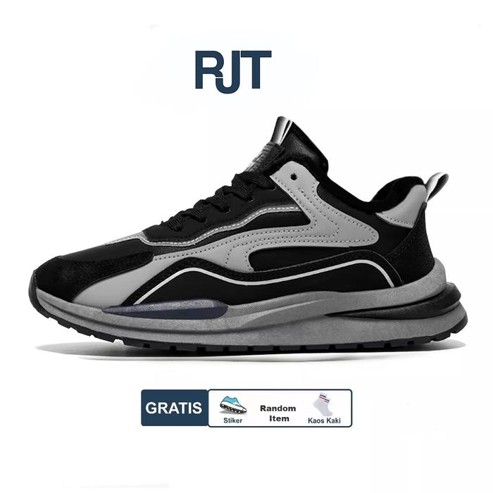 RJT SUPER BLACK - SEPATU PRIA CASUAL OLAHRAGA SHOES & SNEAKERS RUNNING/SPORT KASUAL HITAM - HITAM, 41