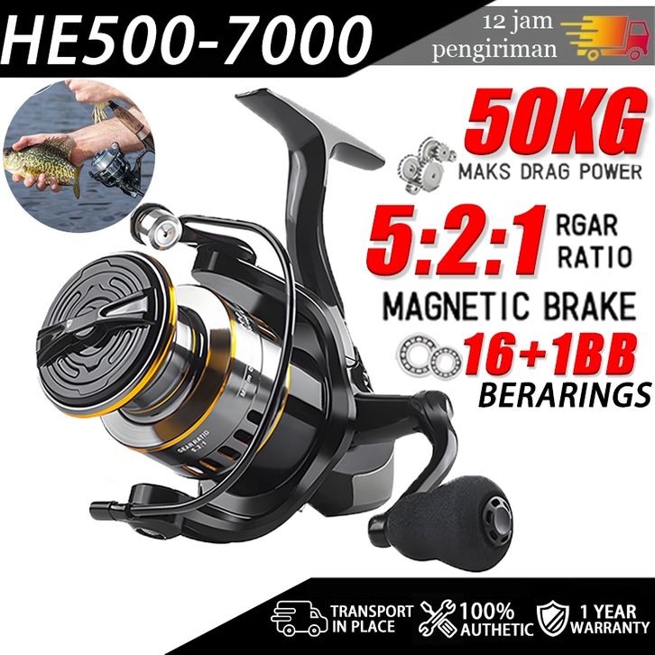 Asli Besi Fishing Reel HE500-7000 MAX Drag 80kg Spinning Casting Rod Reel, Mesin Pancing Reel Murah
