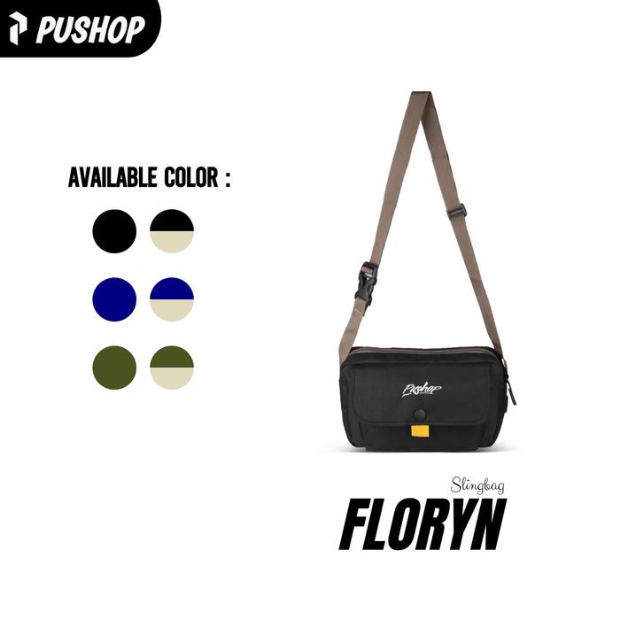 PUSHOP TAS SELEMPANG PRIA WANITA FLORYN - SLINGBAG UNISEKS CEWEK COWOK SLING BAG KASUAL KANVAS POLOS - HITAM