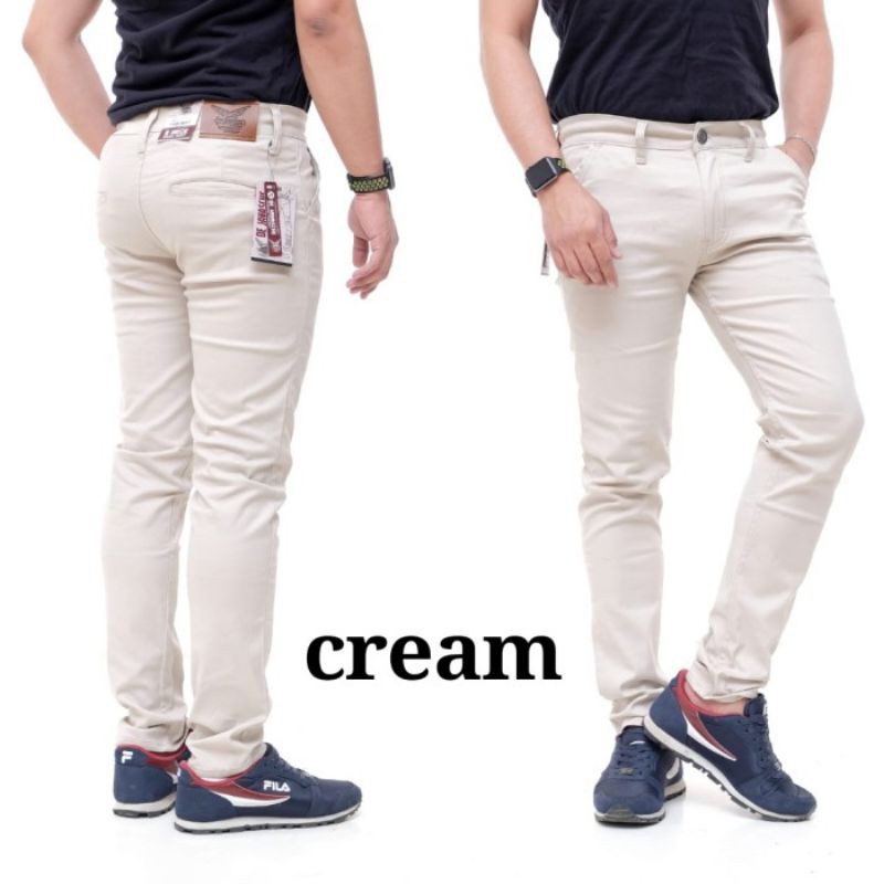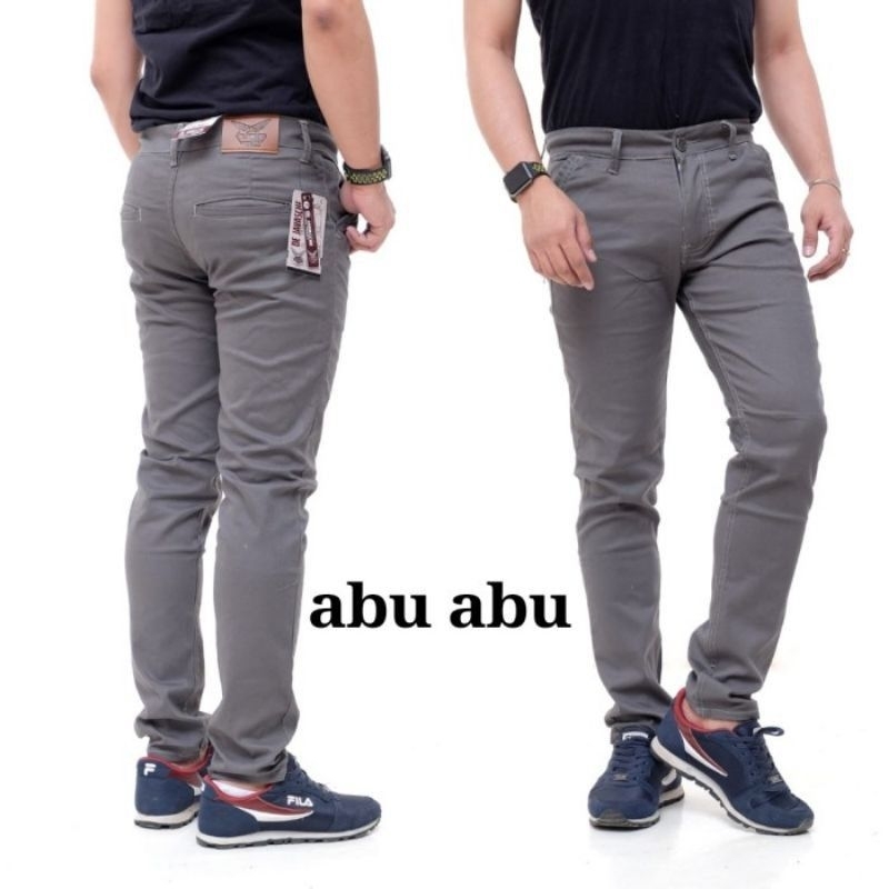 Celana chinos panjang pria slim fit cowok dewasa bahan katun melar hitam abu cream mocca ukuran uk 28 29 30 31 32 33 34 35 36 37 38 murah