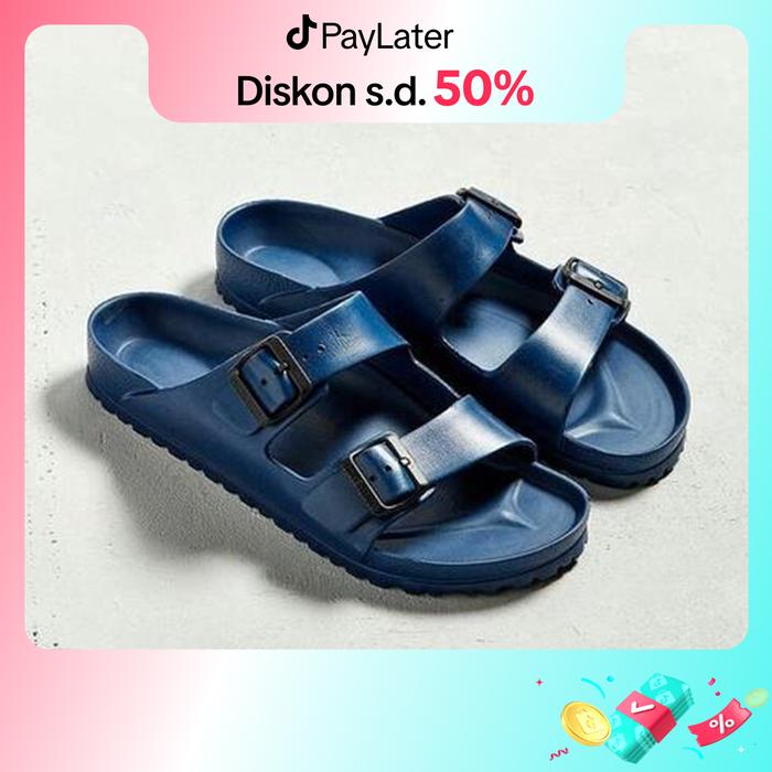 SANDAL PRIA STRAP MURAH SLIP ON RINGAN ANTI LICIN ANTI SLIP KEKINIAN DAN KASUAL BLACK SENDAL JEPIT KARET EVA - BLACK, 42