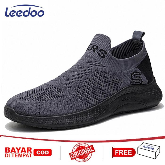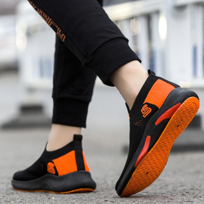 LEEDOO SEPATU PRIA SNEAKERS SEPATU OLAHRAGA LARI HITAM CASUAL FASHION RUNNING SPORT SHOES KARET MR127 - ORANGE, 39