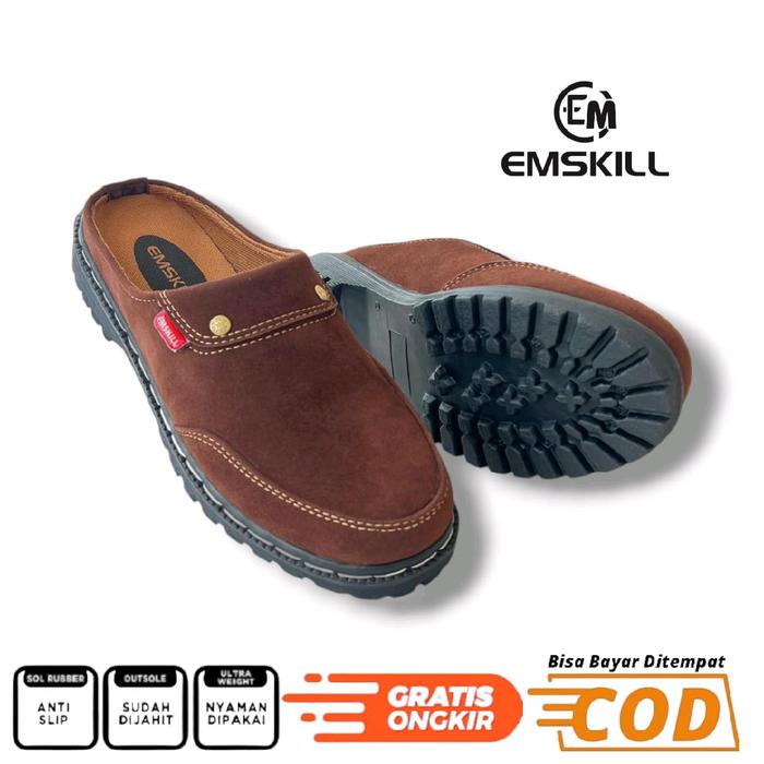 EMSKILL-SANDAL SEPATU BUSTONG COWOK SANDAL SEPATU TUTONG SLOP PRIA TERBARU KARET SHOES SELOP KASUAL - SL SUEDE HITAM, 39