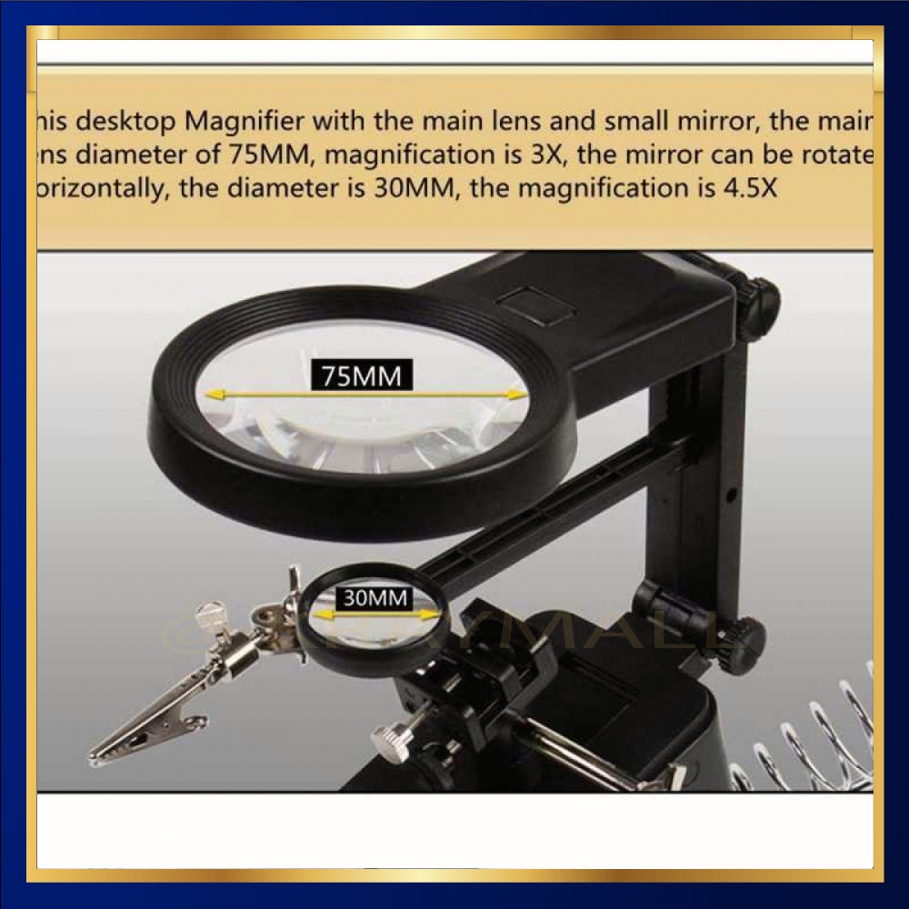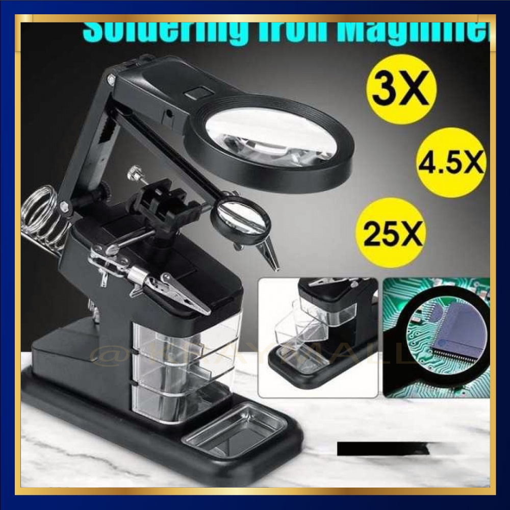 Pegangan Solder dengan Kaca Pembesar LED Welding Magnifier 3X/4.5X/25X - TH-7026