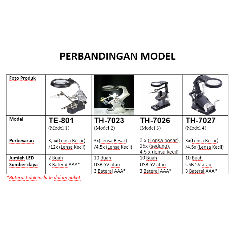 A2T - Alat Solder Penjepit PCB + Kaca Pembesar 3X/4.5X + Lampu + Stand Holder
