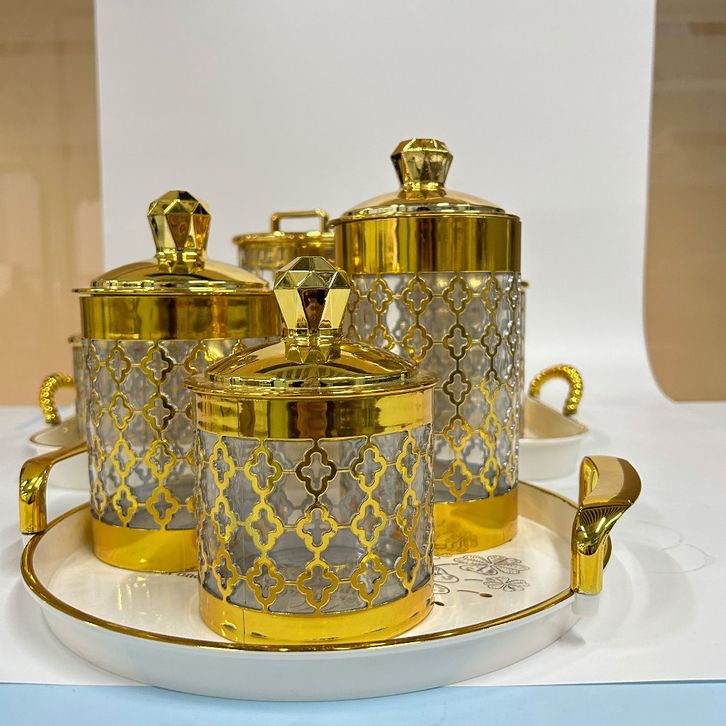 Toples Kaca Set 3Pcs Mewah Emas Plastik Eksklusif Murah Berkualitas