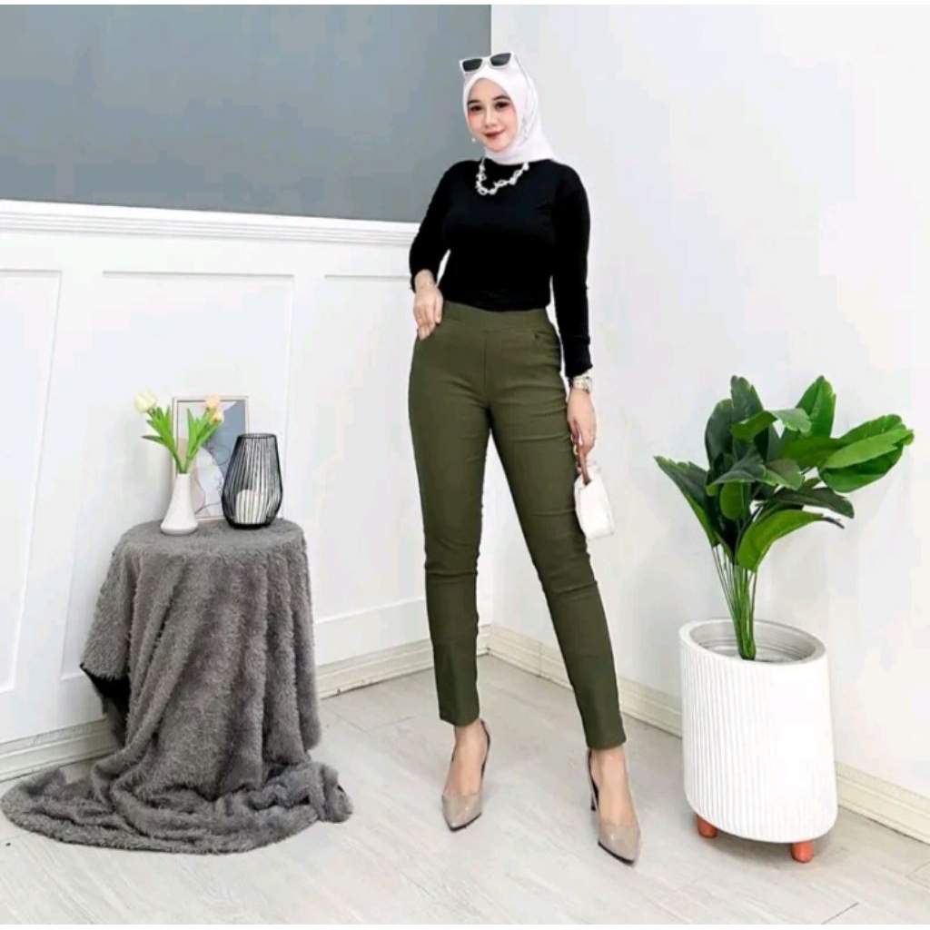 Celana Chinos Wanita Elizabeth Pants Bahan Softjeans Tebal dan Stretch Celana Kerja Wanita Nyaman