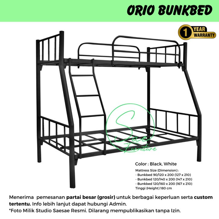 [Star] Ranjang Susun 2 Tingkat Ranjang Besi Susun 2 Tingkat Orio Bunkbed 90/120 X 200