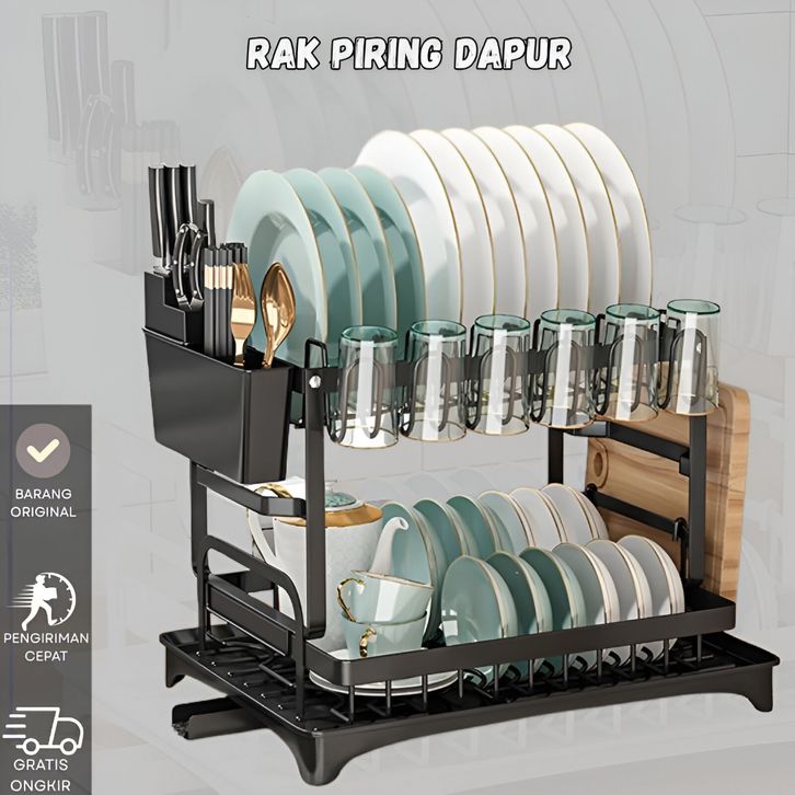 Rak Piring Dapur Stainless Steel Penyimpanan Rak Pengering Piring Rak Mangkuk Piring