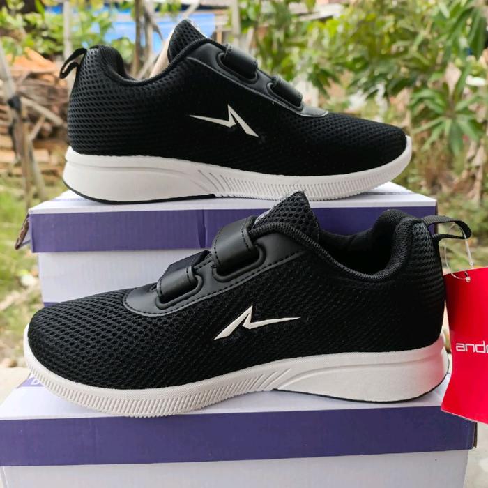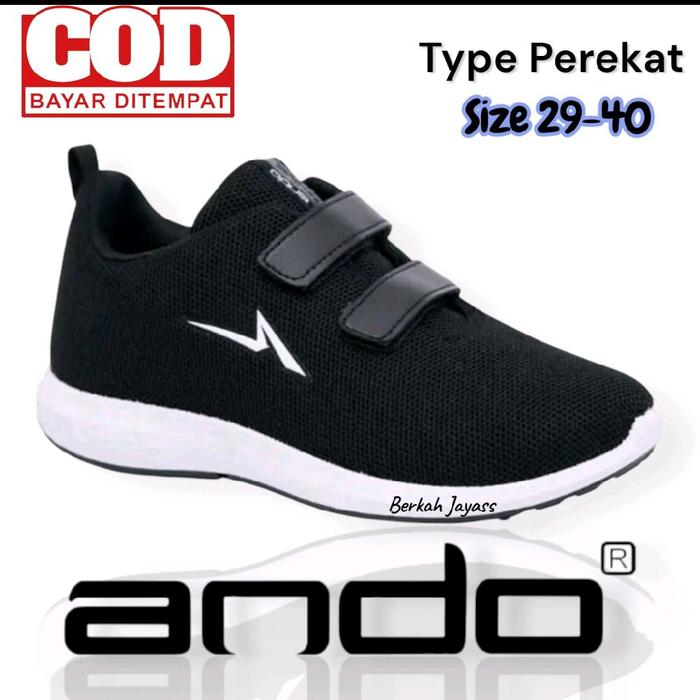 SEPATU SEKOLAH ANDO PEREKAT HAK DATAR CASUAL SHOES SIZE 29-40 SNEAKERS COWOK SPORT PRIA HITAM - 37