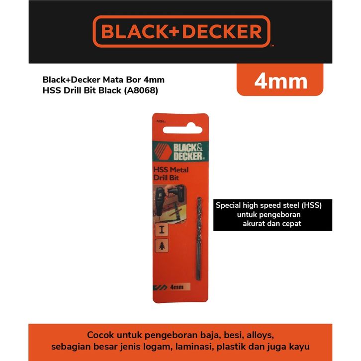 PROMO Black+Decker Mata Bor 4mm HSS Drill Bit Black A8068 ORIGINAL