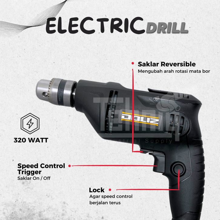 PROMO Mesin Bor Listrik / Bor Tangan DOLIZ BA632 Electric Drill 10 mm Reversible Hand Drill BA 632 ORIGINAL