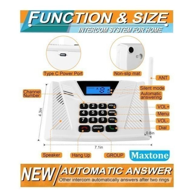 Intercom wireless interkom 2 arah bicara tanpa kabel Full duplex wireless intercom 2 way MAXTONE SK1209 - Paket 3 Unit