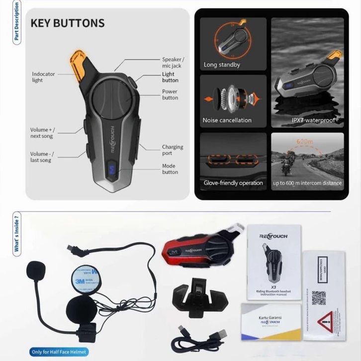 IC | INTERCOM BLUETOOTH RETOUCH X3 Produk Berkualitas dan Original