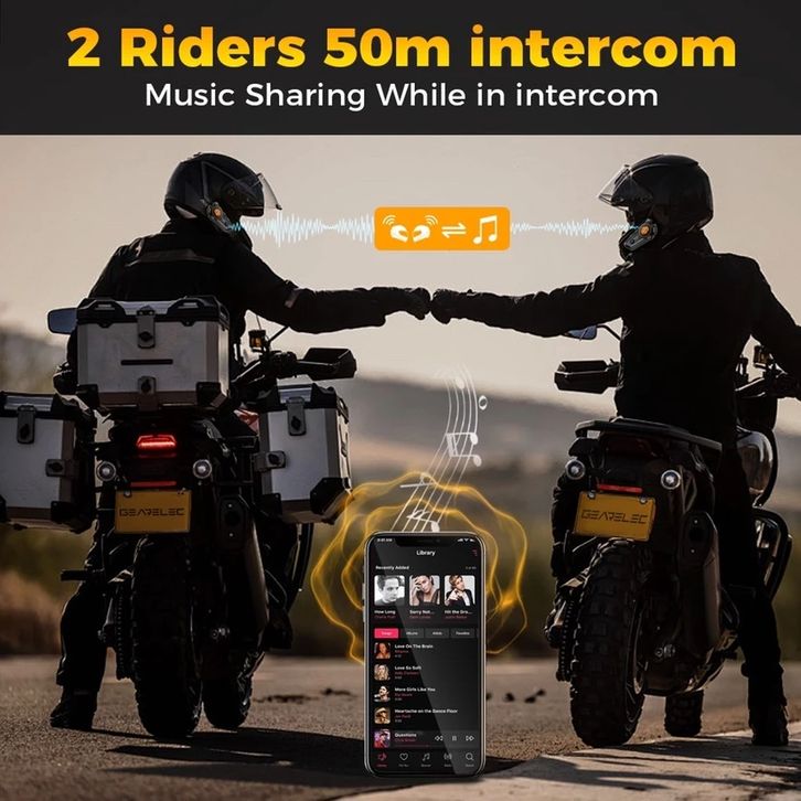 GEARELEC C2 Pro Motorcycle Helmet Intercom Headset 2 Riders 50m Intercom Support Music Sharing While In Intercom