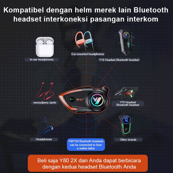 ZACRO Y80 2X Intercom helm Bluetooth Chip Qualcomm 5.0 FM Radio intercom dua arah dan Peringkat tahan air IPX6