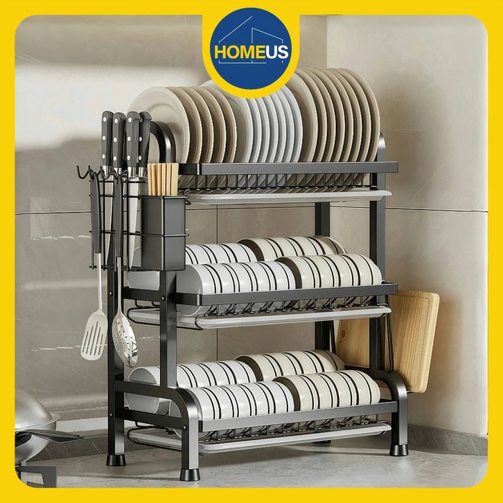Homeus Rak Mangkok Piring Penyimpanan Besi Tahan Karat Dapur Stainless Rack Organizer