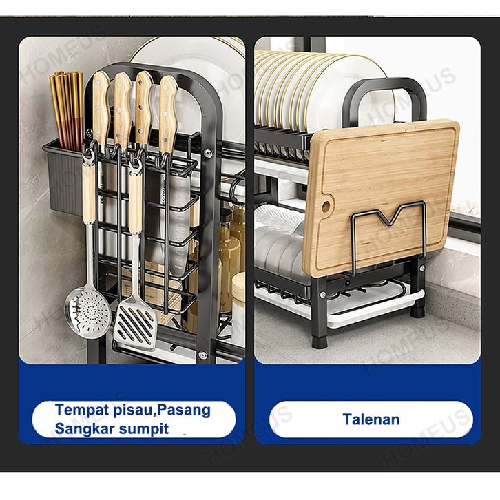 Homeus Rak Piring Rak Cuci Piring Penyimpanan Dapur Stainless Steel Muat Mangkuk Dan Piring