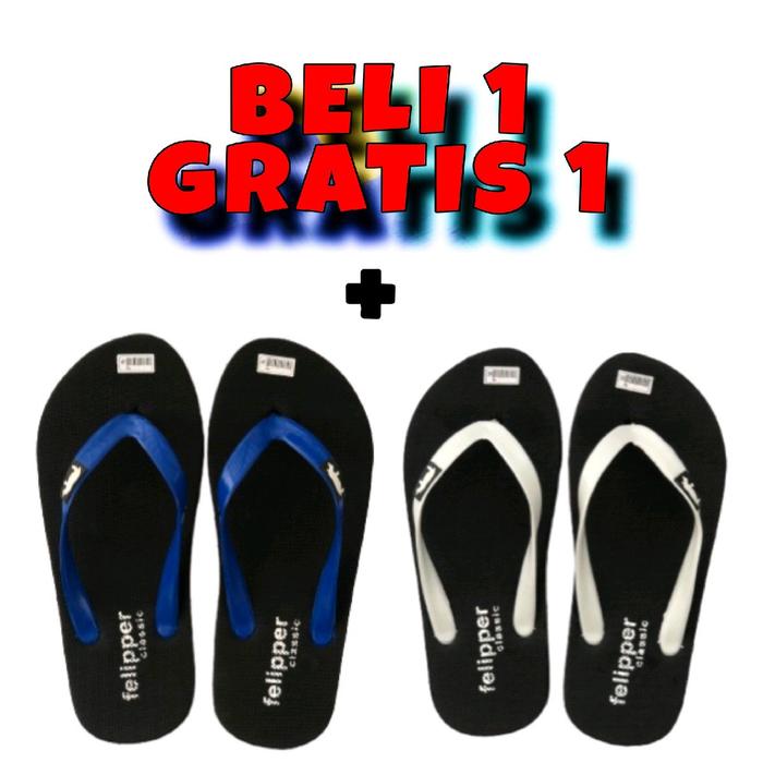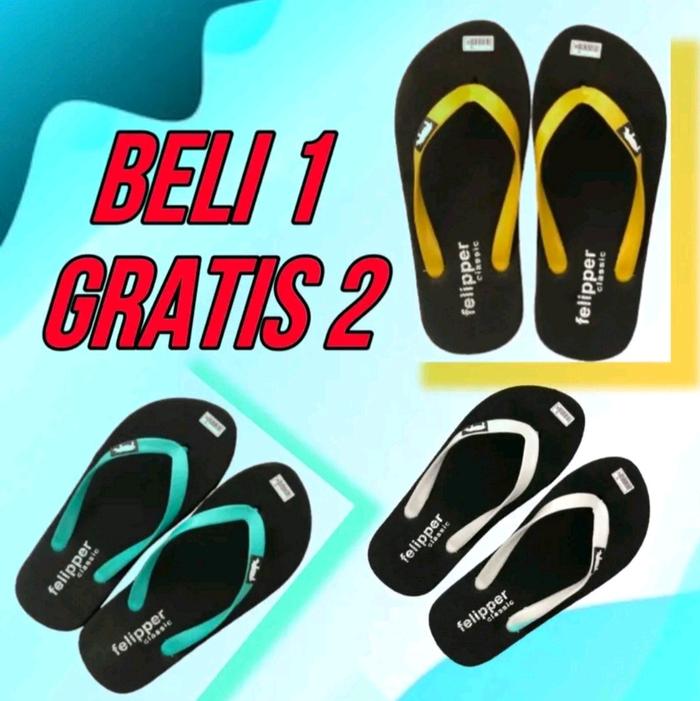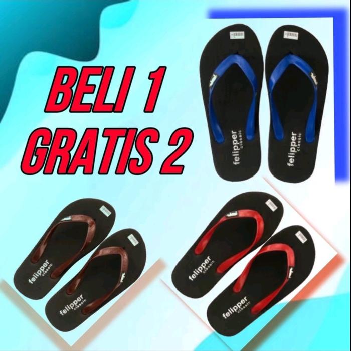 BELI 1 GERATIS 2 SENDAL JEPIT PRIA FELIPPER TERBARU SANDAL PRIA DEWASA - BIRU+COKLAT+MERAH, 38