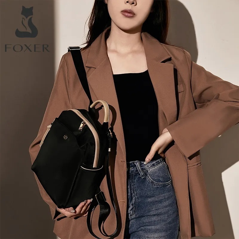 FOXER Tas Ransel Wanita Tas Ransel Kecil Yang Stylish Tas Ransel Kain Oxford Ringan