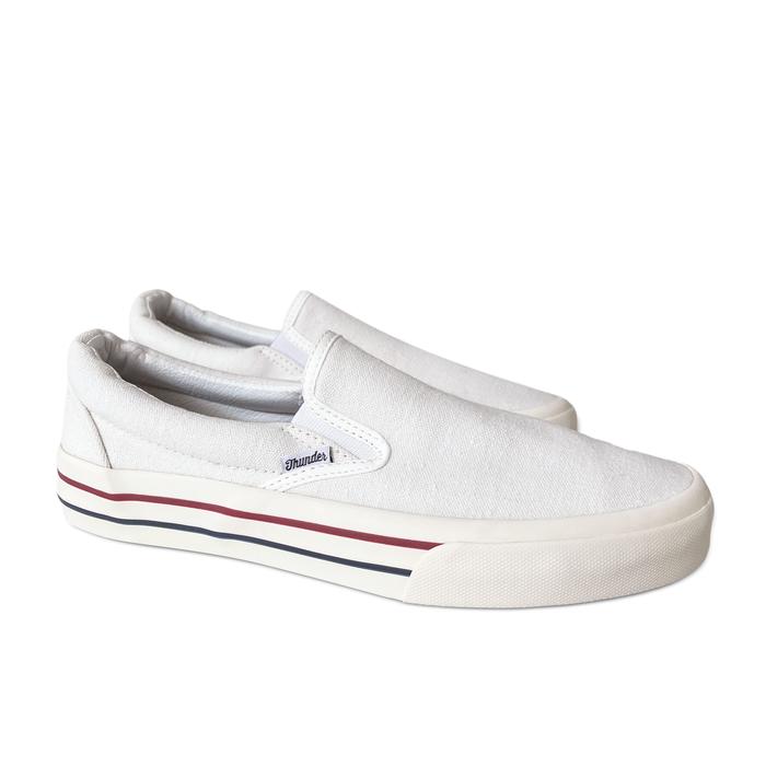 SEPATU THUNDERBEAR - SLIP ON VOLTAIRE OFF WHITE DX CANVAS FLAT SHOES PRIA SNEAKERS KASUAL BLACK - 37