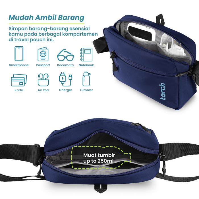 TORCH TAS SELEMPANG BAHU UNISEX - SLING BAG TRAVEL POUCH MINO 2L & 3L - 3L POLOS, NAVY