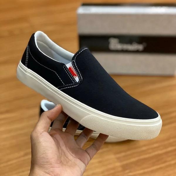 SEPATU WARRIOR ARTHUR SNEAKERS SLIP ON KANVAS KLASIK PRIA WANITA - HITAM HITAM, 38