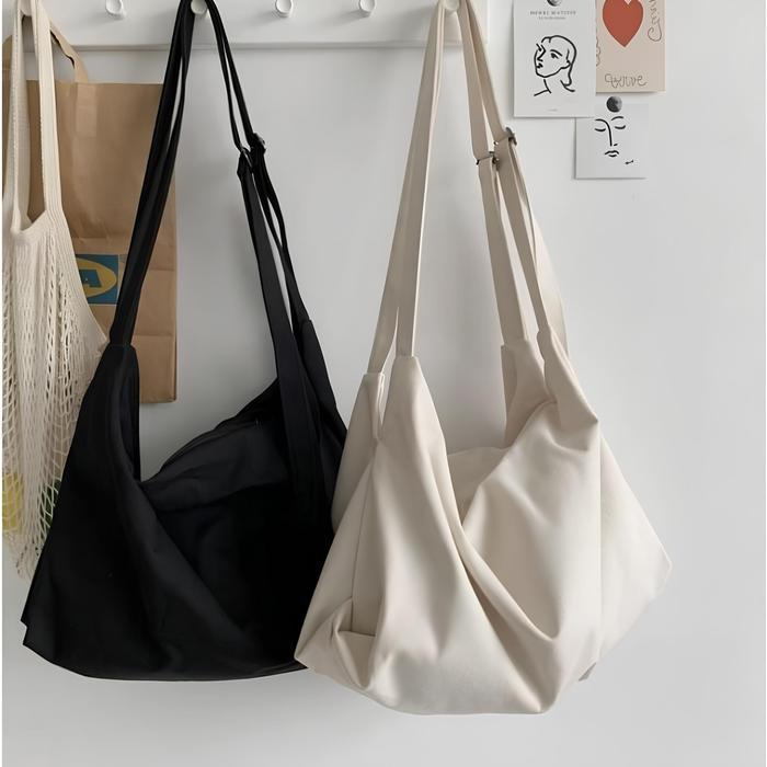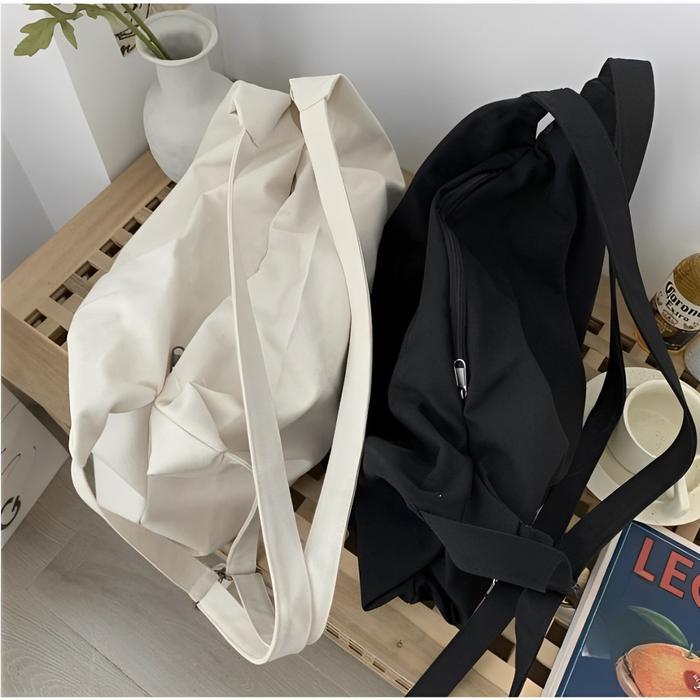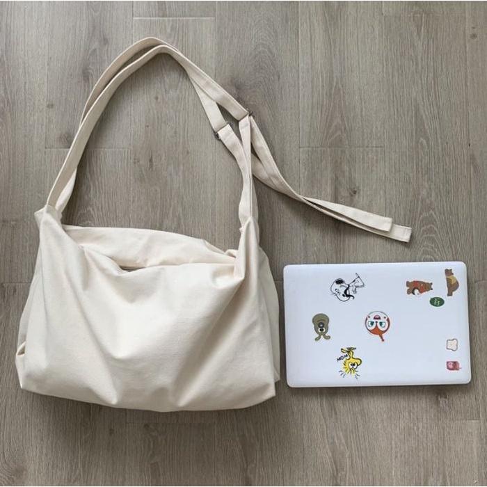 PEAKY SLINGBAG TAS SELEMPANG BAHU KANVAS WANITA PRIA REMAJA POLOS KOREAN STYLE - CREAM