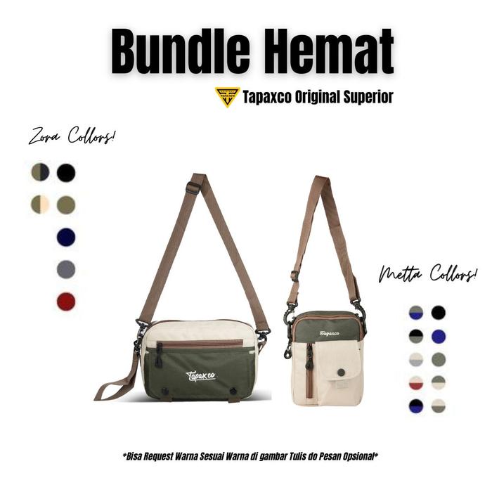 [BELI LOKAL] TAPAXCO NEW BUNDLE HEMAT TAS SELEMPANG PRIA BUY 1 GET 1 SLINGBAG CASUAL LOCAL ORIGINAL BAHAN CORDURA HITAM - CREAM HIJAU