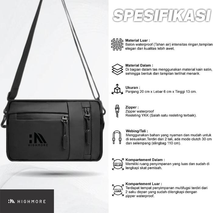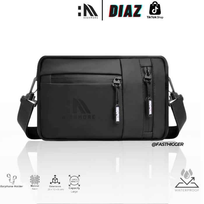 HIGHMORE DIAZ - TAS SELEMPANG PRIA PREMIUM WATERPROOF [ HARGA PROMO ] SLINGBAG HITAM COWOK