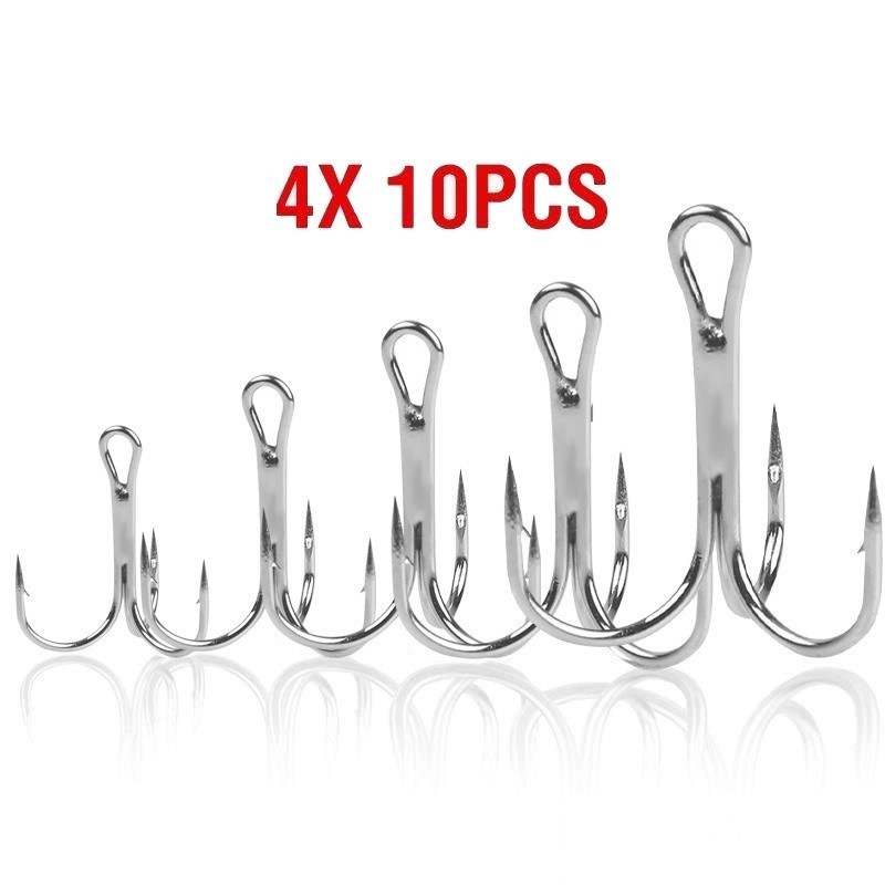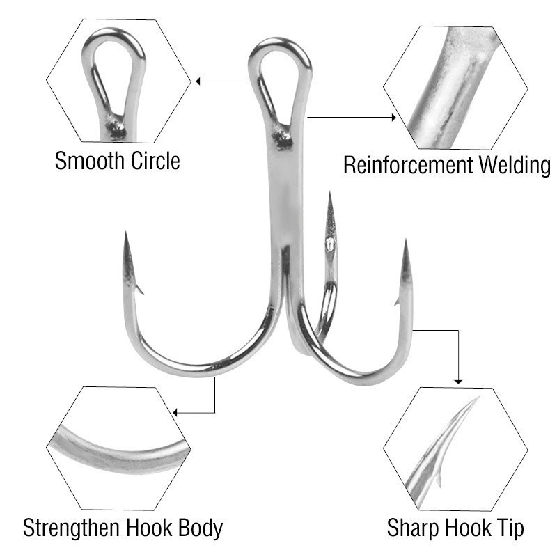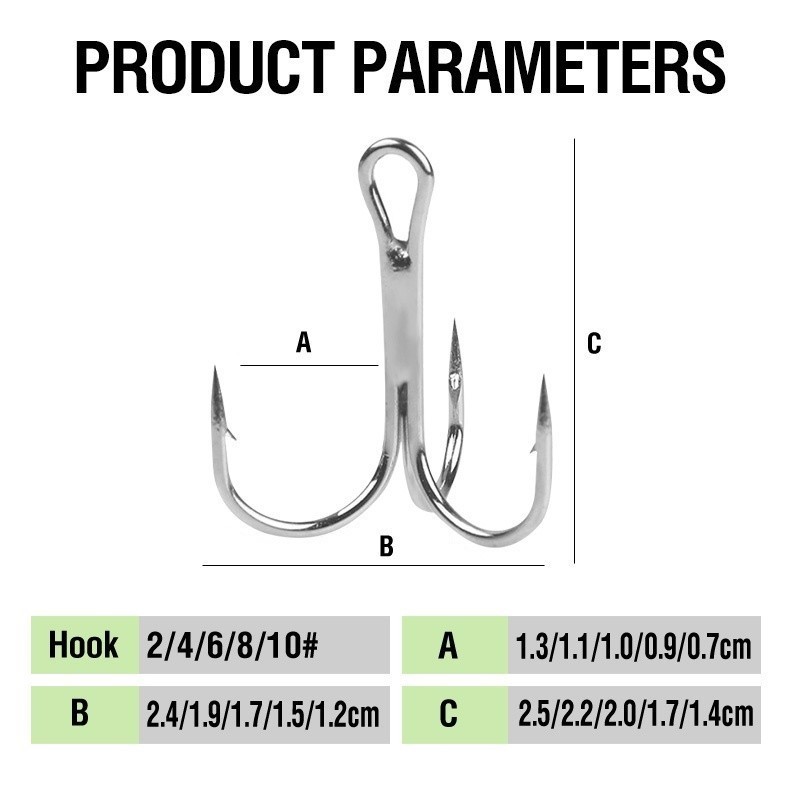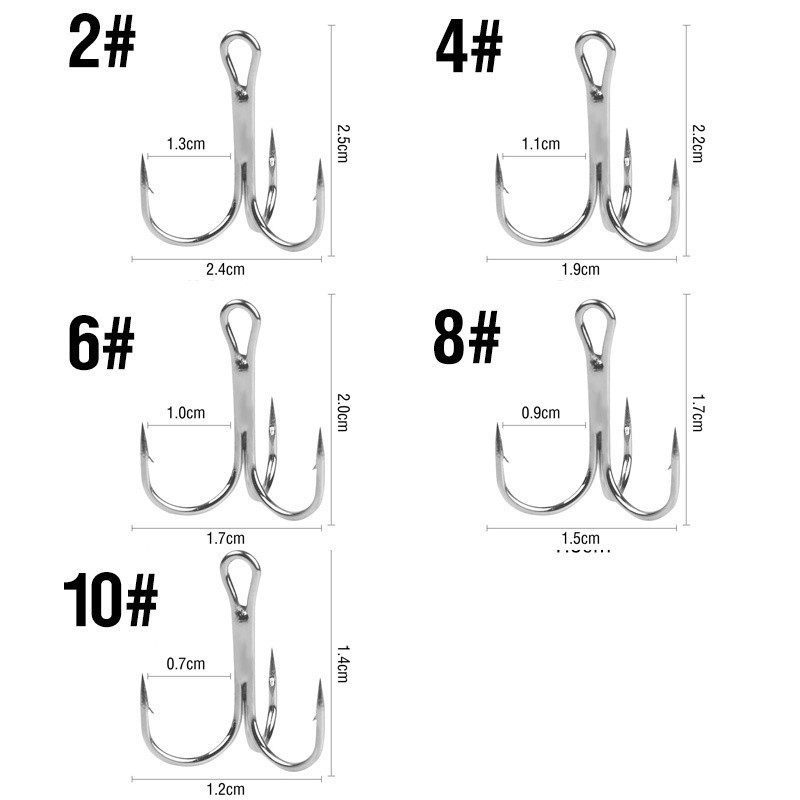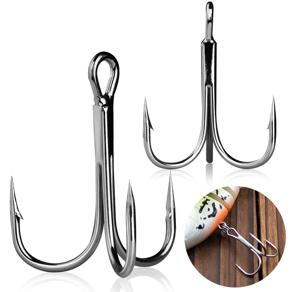 20 Buah Kait Ikan Tiga Baja Kualitas Tinggi 2 #4 #6 #8 #10 # Set Kait Ikan Tiga Melengkung Kait Jangkar Pancing Laut