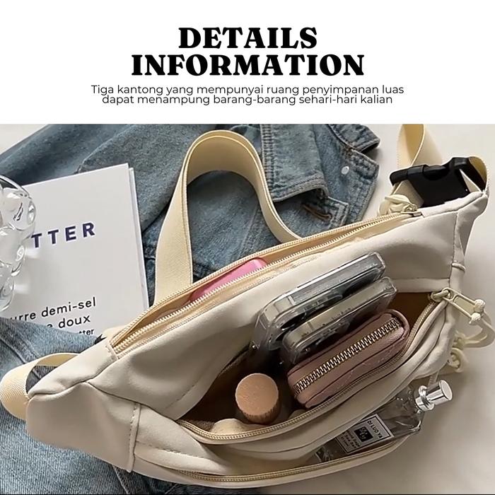 TAS PINGGANG FASHION WANITA TRENDY / TAS WANITA BAHAN NYLON WATERPROOF / TAS PINGGANG WANITA KEKINIAN WAISTBAG - LW08 - PUTIH