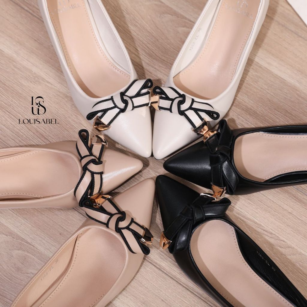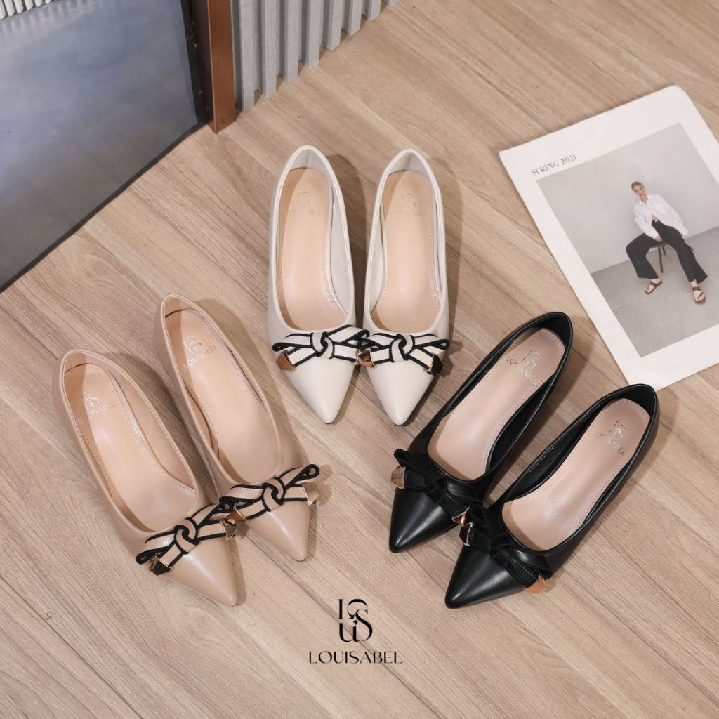 Sepatu Hak Wanita Murah Bow Diva Block Heels Sepatu Kerja Wanita Heels Tapak Tahu Hak Tinggi Import 4cm LSB-1368-EL