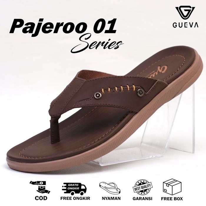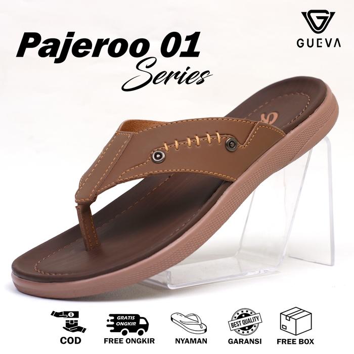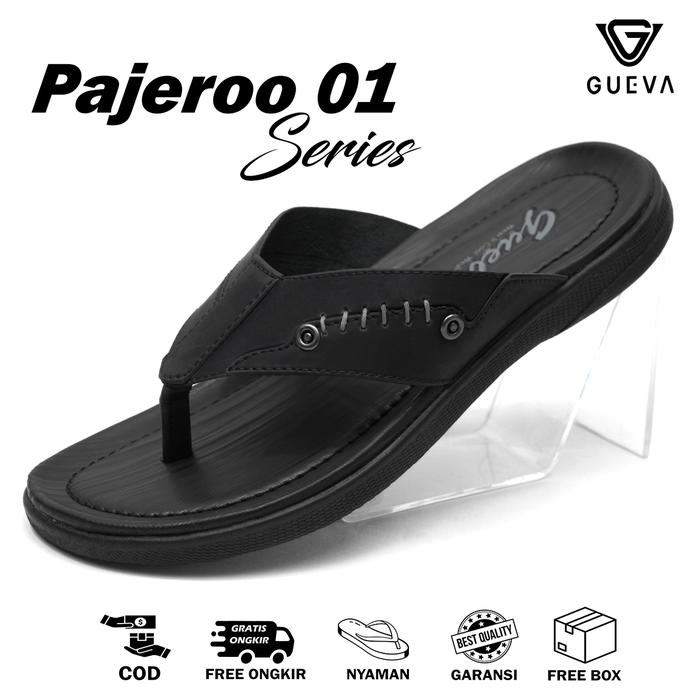 GUEVA SANDAL JEPIT PRIA PAJEROO 01 SERIES SENDAL JAPIT KASUAL INDOOR OUTDOOR SIZE 39-43 BISA ANTI SLIP ANTI LICIN KARET - HITAM, 38