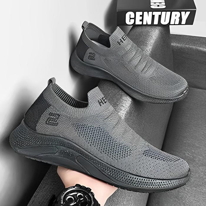 TECHDOO SEPATU SNEAKERS PRIA OLAHRAGA SEPATU FASHION PRIA CASUAL MR127 - HITAM ORANGE, 39