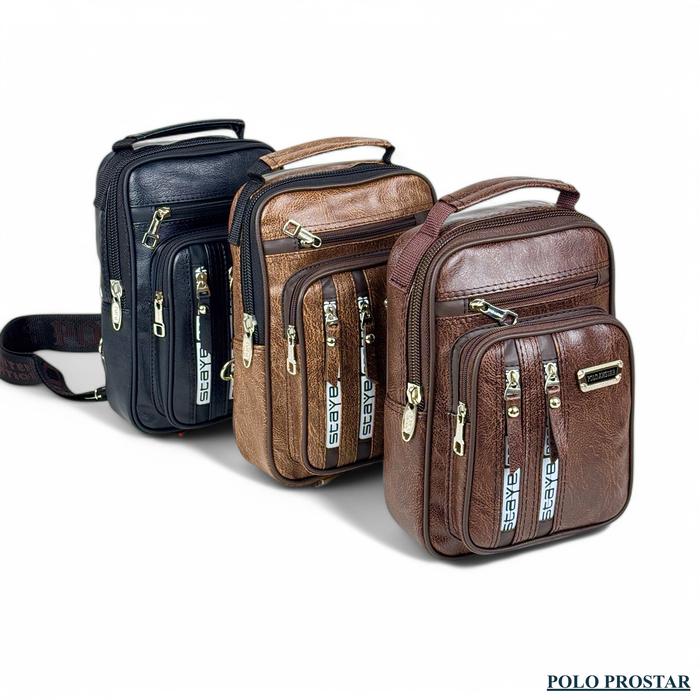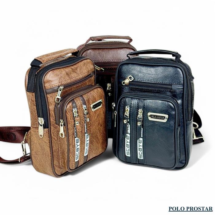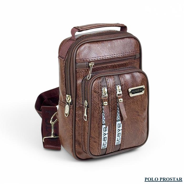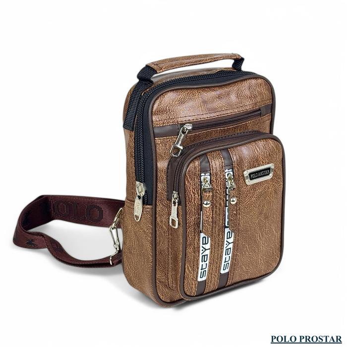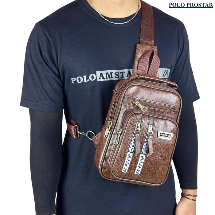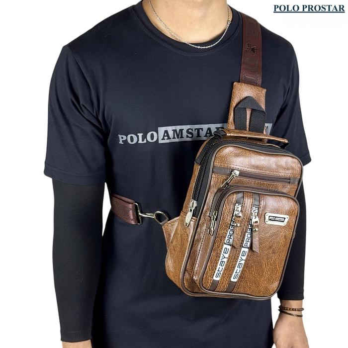 POLO AMSTAR- SLINGBAG TAS SELEMPANG BAHAN KULIT PU PREMIUM CROSSBODY BAG PRIA - COKLAT MUDA