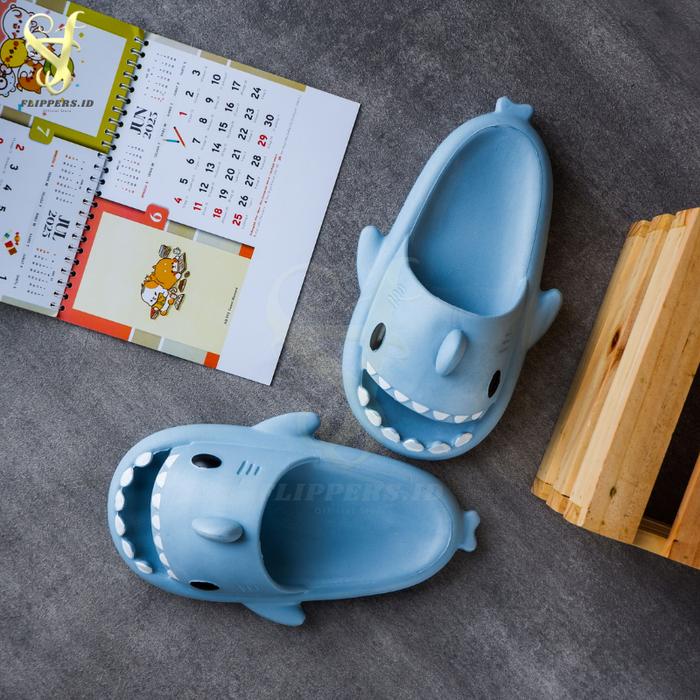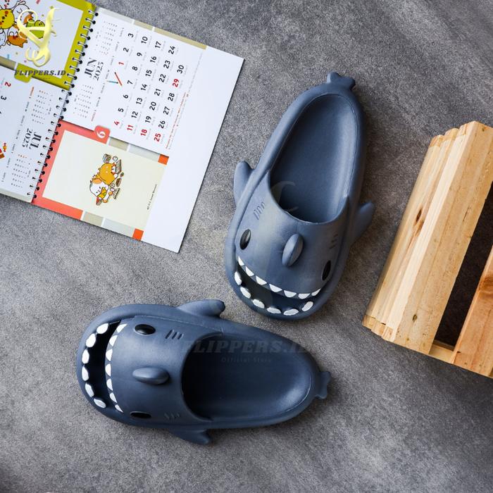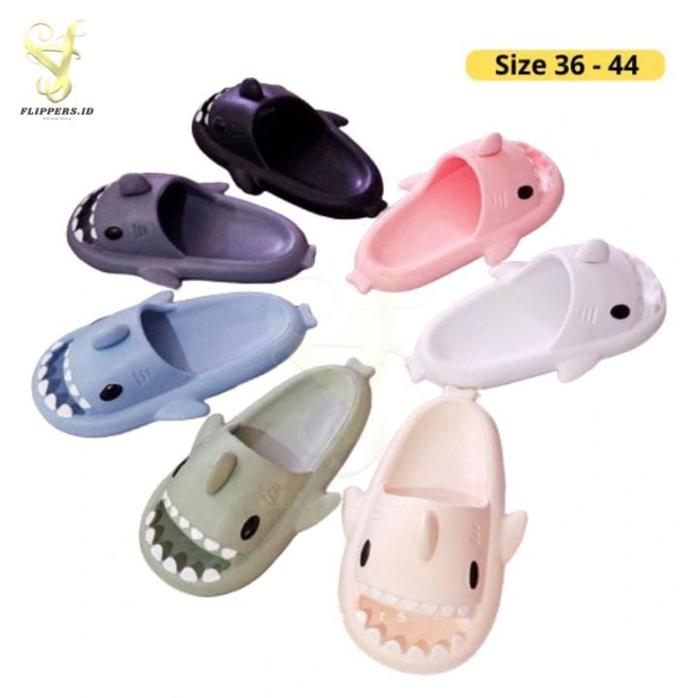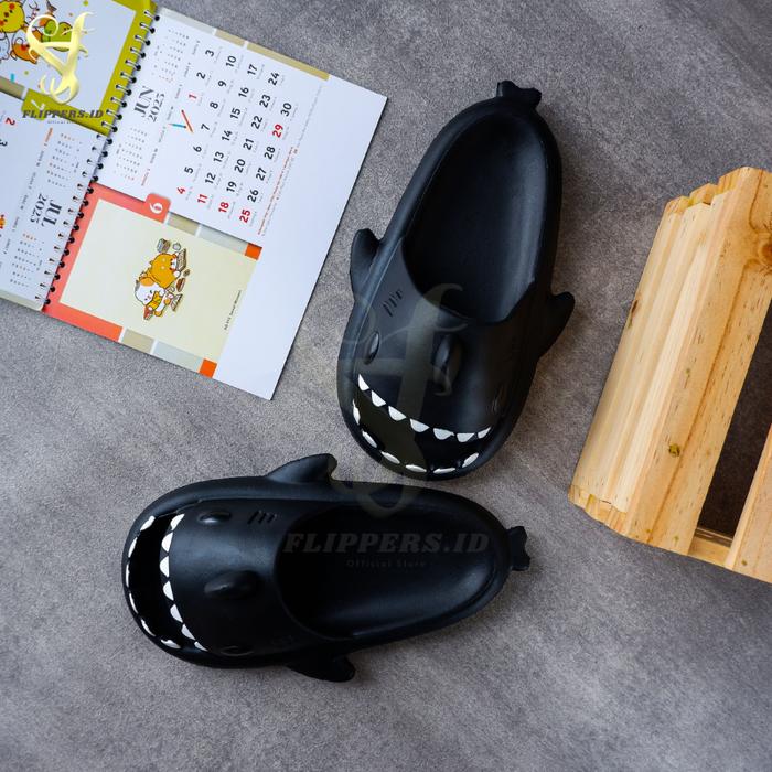 FLIPPERS.ID SANDAL SELOP HIU PRIA WANITA SENDAL PINDANG SENDAL SHARK COUPLE KEKINIAN SANDAL KARET JELLY ANTI SLIP LOCAL PRIDE - HITAM, 36